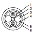 ![]() 1. Optical fiber single-core cord 2. Tension member (plastic-sheathed wire) 3. Filler (plastic) 4. Filler surrounding signal wires (plastic, yarn, or fiber) 5. Holding tape (plastic) 6. Heat-resistant PV sheath |